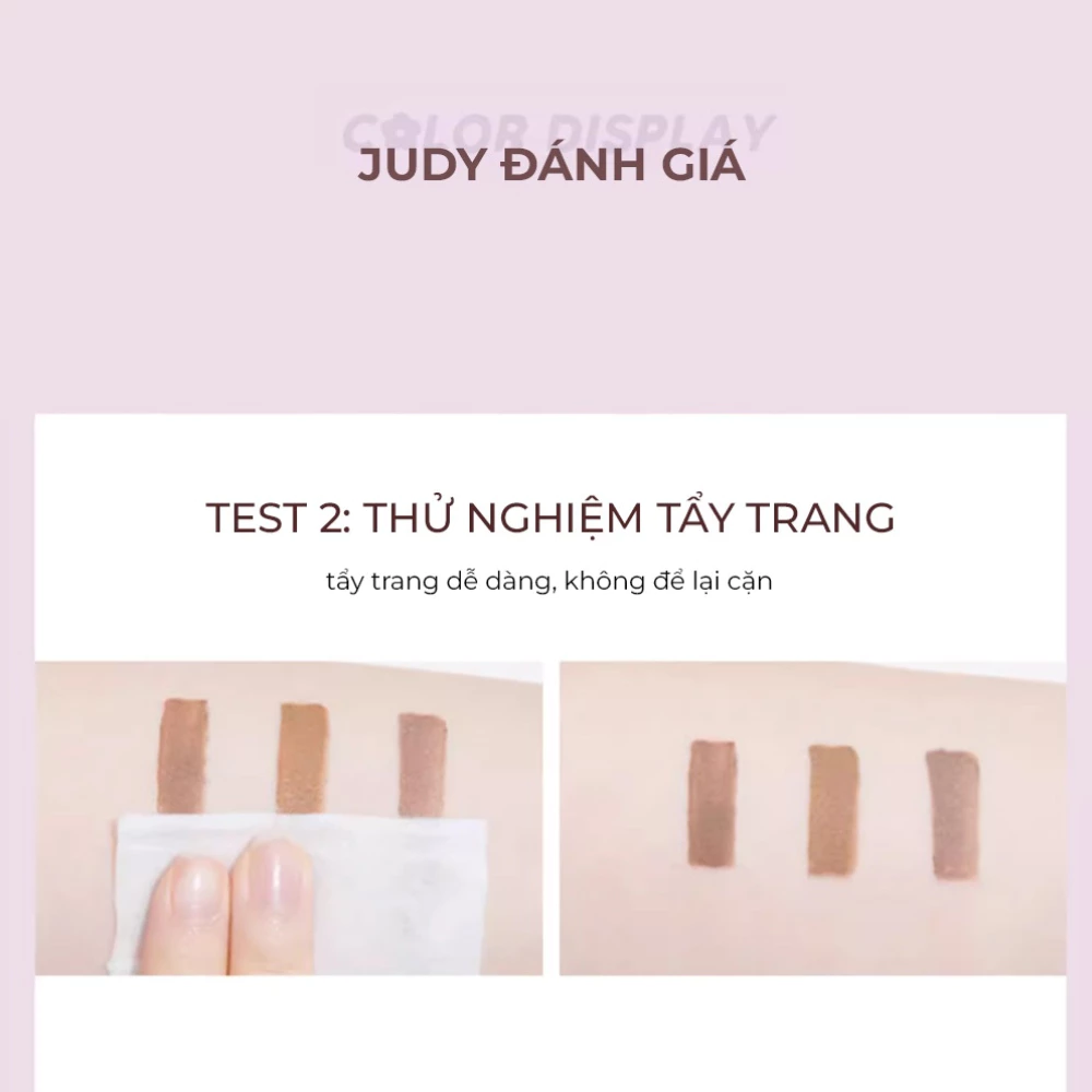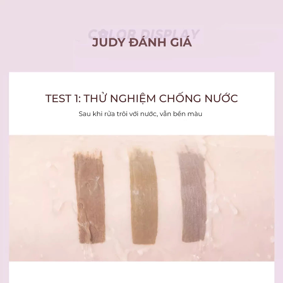 Công thức chống thấm nước của sản phẩm giúp độ bám màu lâu dài, không bị lem hay trôi ngay cả khi tiếp xúc với mồ hôi hoặc nước, giúp đôi lông mày luôn tươi mới và gọn gàng suốt cả ngày. Điều này mang lại sự tự tin tuyệt đối cho bạn trong mọi hoạt động, kể cả những ngày nắng nóng hay mưa ẩm.