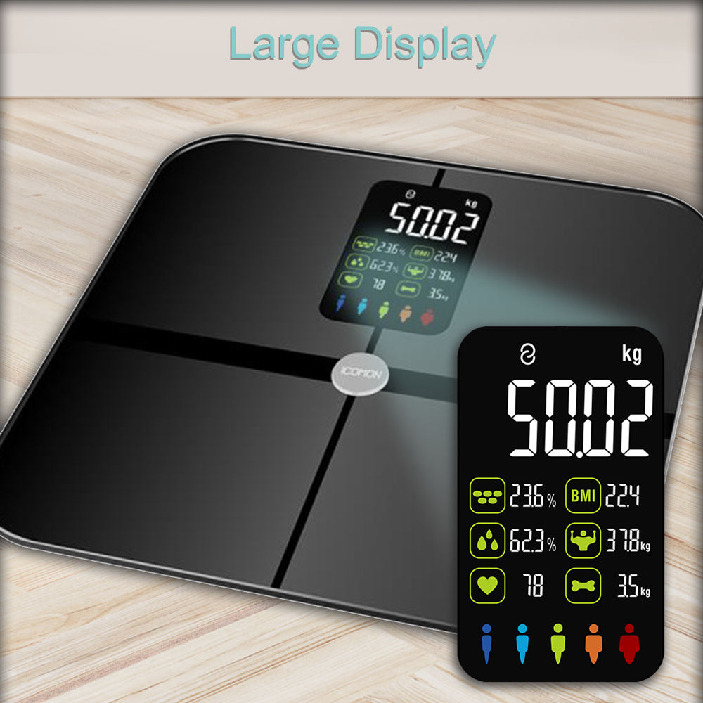 Máy quét dùng Bluetooth có thể kết nối với điện thoại di động của bạn (Android 6.0+ & IOS 8.0+) hoặc iPad qua Bluetooth 4.0. Tải xuống ứng dụng ‘Fitdays’ miễn phí từ App Store hoặc Google Play![]()