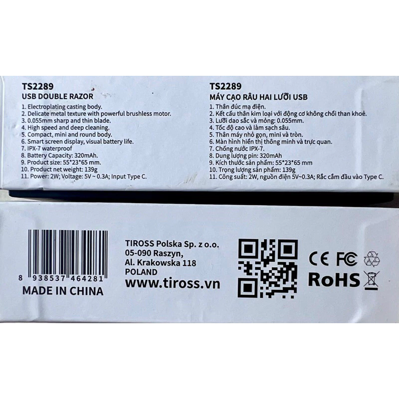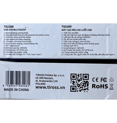 Tên sản phẩm: Máy cạo râu hai lưỡi USB TS2289