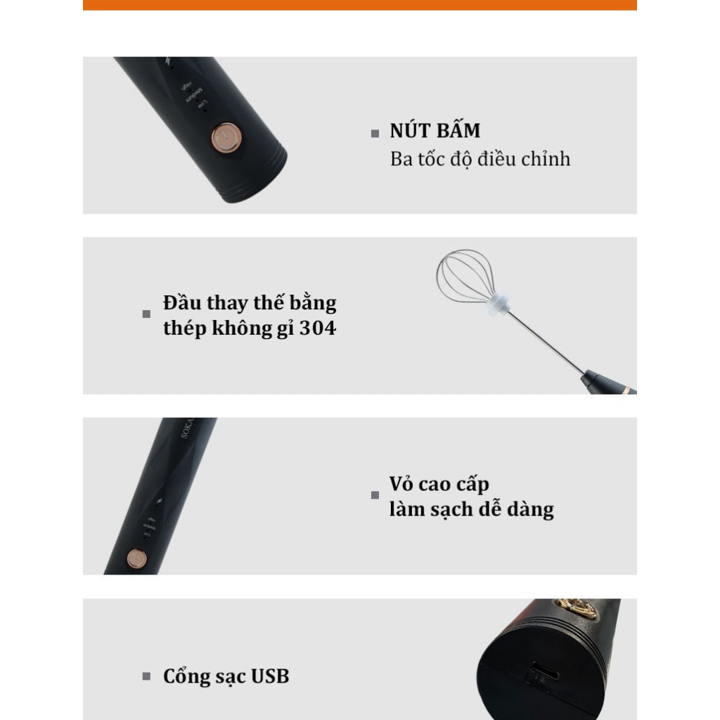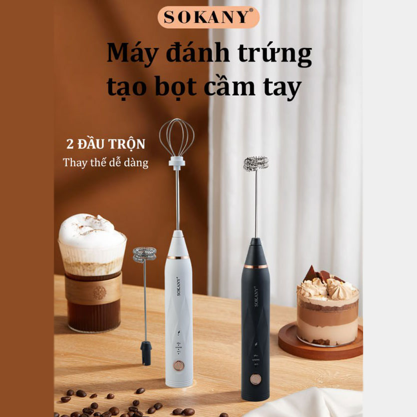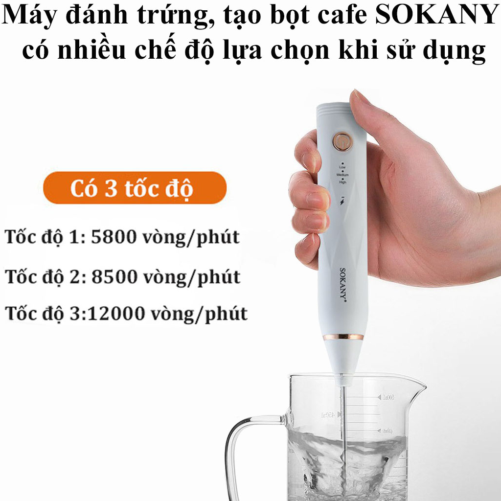 Máy đánh trứng, tạo bọt cà phê cầm tay SOKANY SẠC PIN có 3 tốc độ đánh, nhỏ gọn, dễ tháo lắp - SK201AB