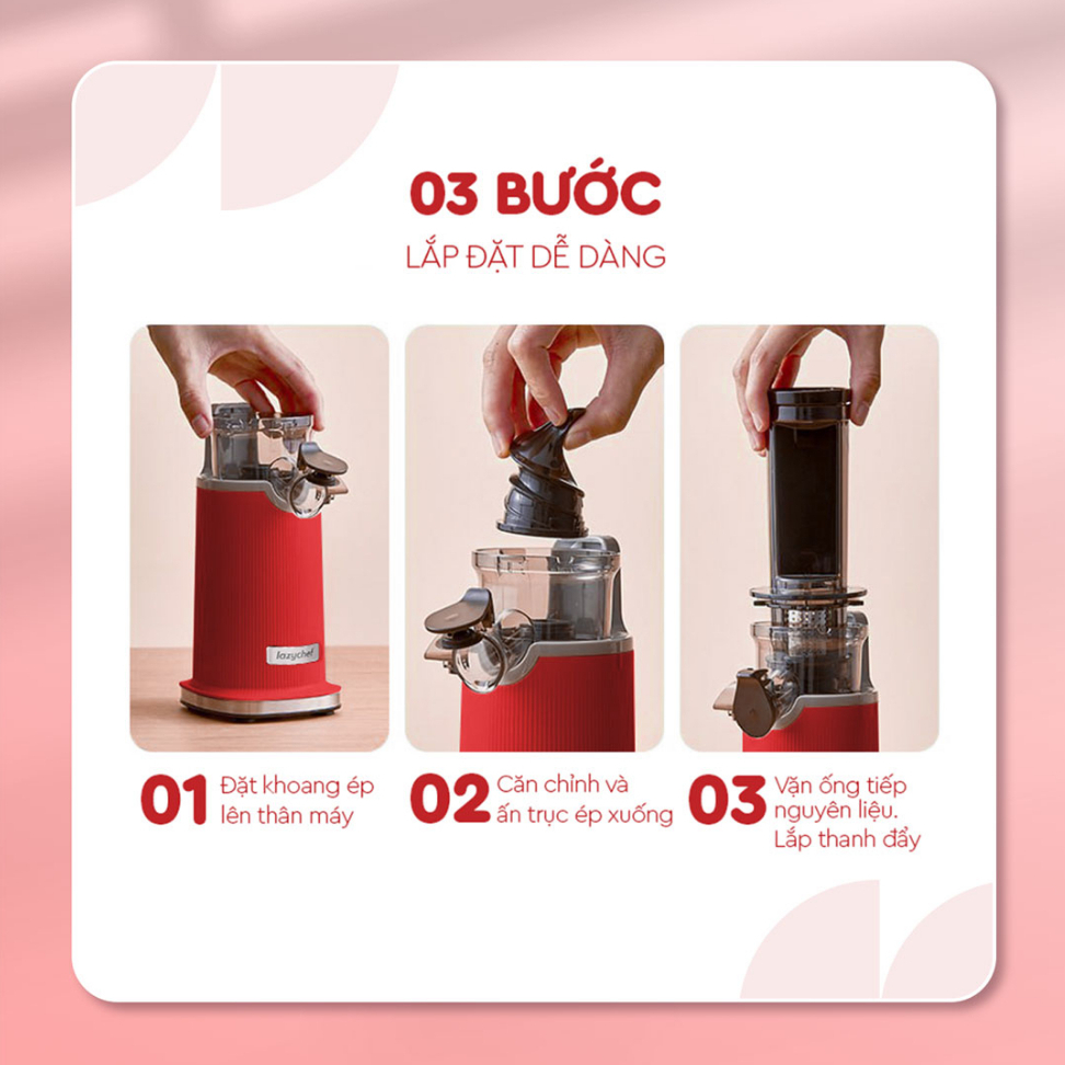 ✔️ Chúng tôi tự tin về sản phẩm đảm bảo tiêu chí 3S: 3 giây tháo lắp dễ dàng, 3 linh kiện duy nhất đi kèm. Máy ép chậm mini 3S tuy nhỏ nhưng có võ, chẳng cần quá nhiều linh kiện lỉnh kỉnh đi kèm mà vẫn cho ra được chất lượng nước ép tương đương với những dòng máy tiền triệu trên thị trường. Đem đến một sự lựa chọn kinh tế, một trải nghiệm đơn giản, dễ dàng và tiết kiệm thời gian cho người tiêu dùng.