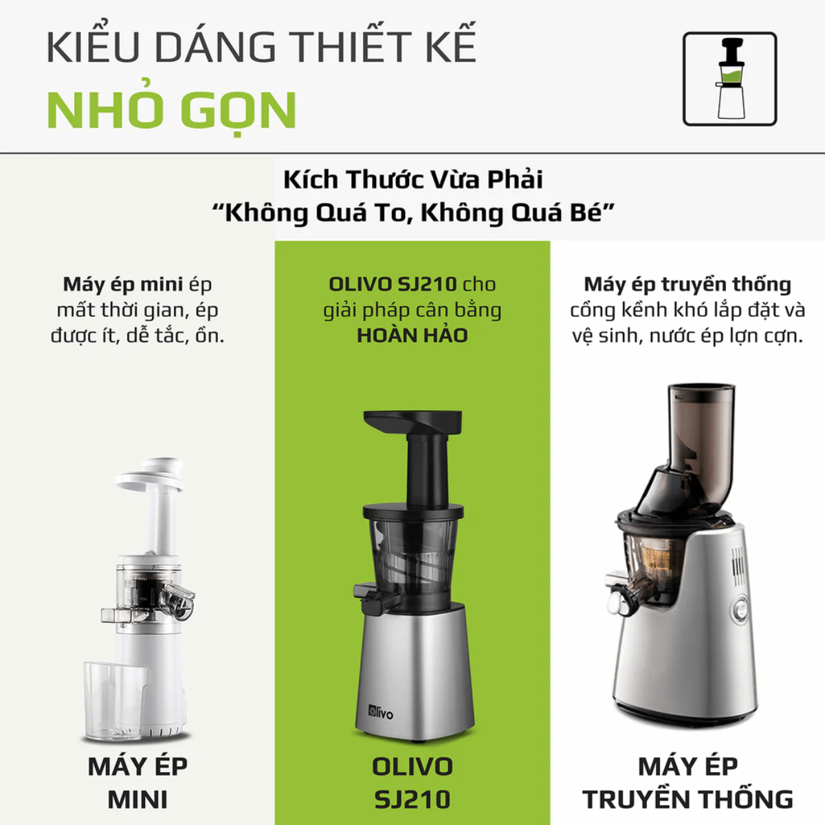 Thiết kế nhỏ gọn, màu sắc sang trọng và đặc biệt không chiếm nhiều diện tích OLIVO SJ210 sự lựa chọn tinh tế cho căn bếp nhà bạn. Máy ép chậm đa năng 3 trong 1 : Làm nước ép, làm kem, làm sữa hạt.