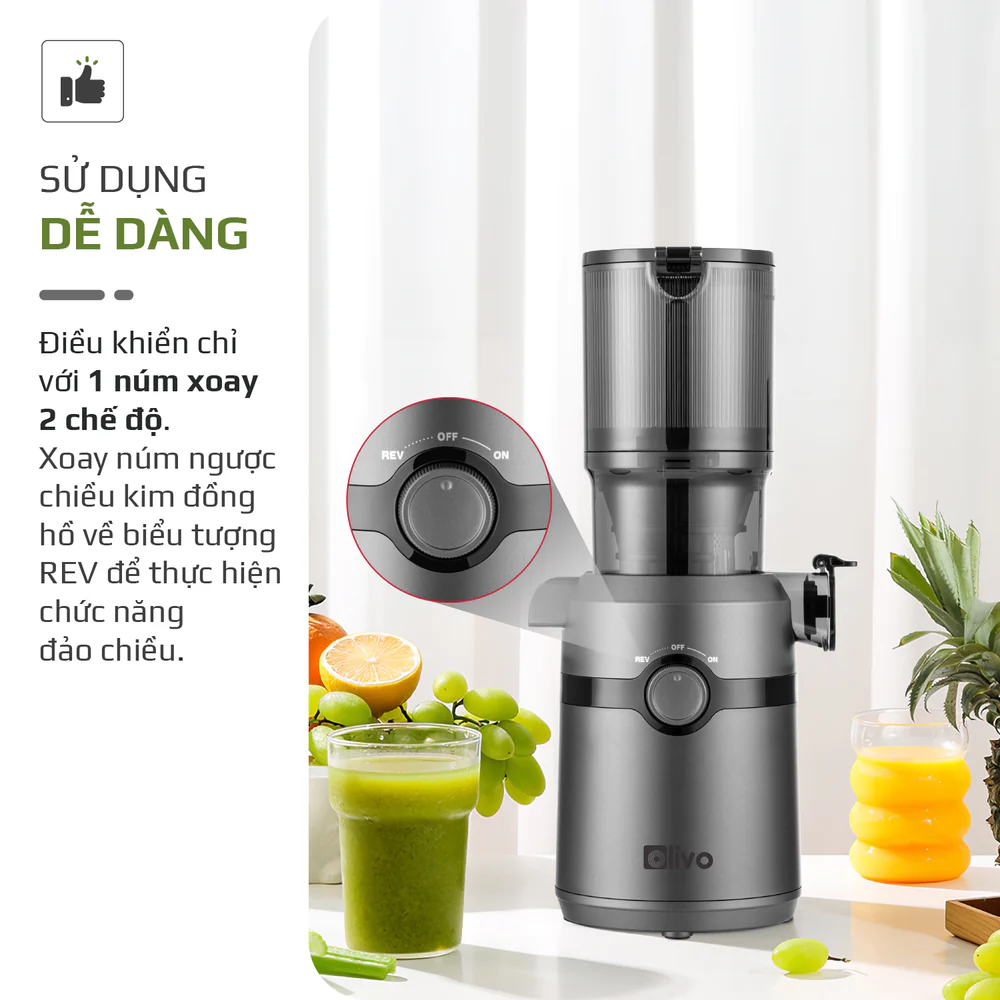 Máy Ép Chậm OLIVO SJ240, mỗi ly nước ép không chỉ ngon miệng mà còn là nguồn năng lượng tươi mát, giúp cả gia đình tăng cường sức khỏe mỗi ngày.