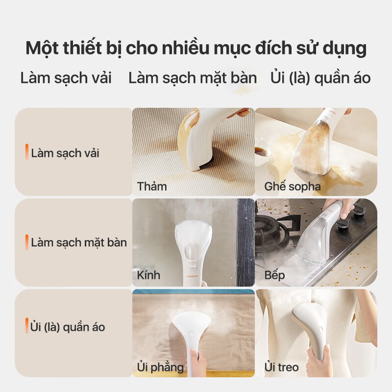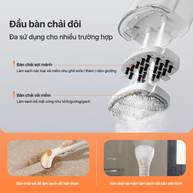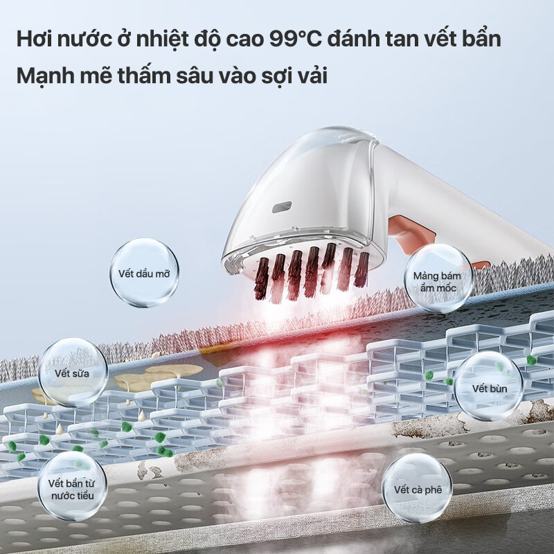 UWANT B200 là máy làm sạch vết bẩn đầu tiên trên thế giới có chế độ hơi nước. Với hơi nước ở nhiệt độ cao, B200 có thể dễ dàng đánh tan các vết bẩn cứng đầu và khử trùng vải bọc, khiến nó trở thành lựa chọn hoàn hảo để làm sạch đồ dệt dành cho trẻ sơ sinh hoặc thú cưng. Chỉ cần thay bàn chải, B200 của bạn có thể biến thành bàn ủi hơi nước quần áo một cách dễ dàng.