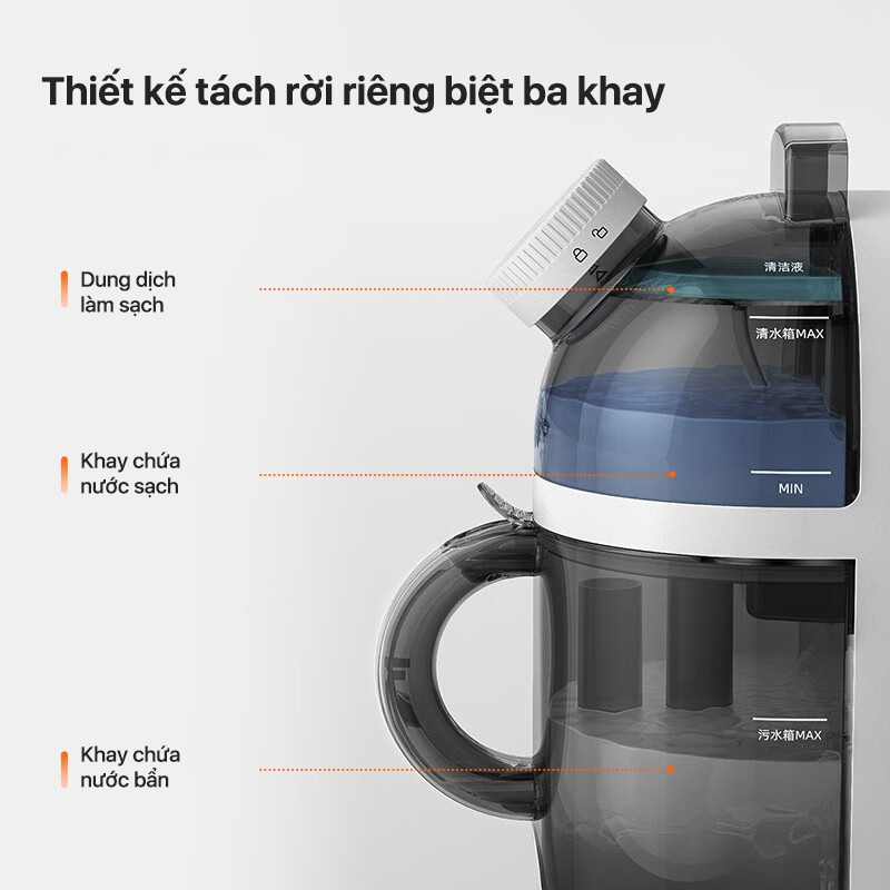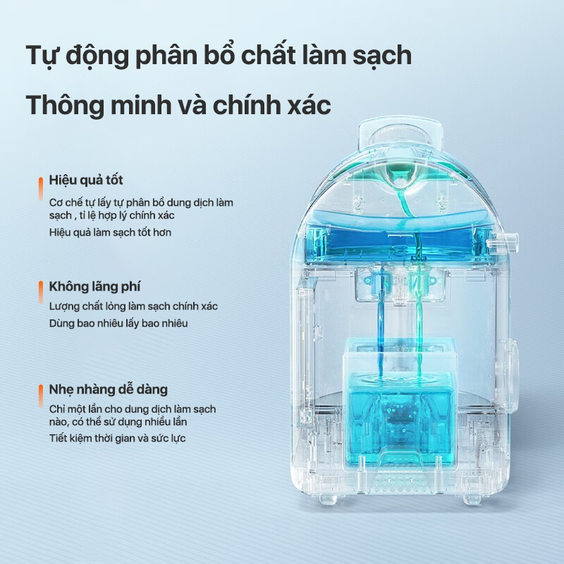 Với công nghệ tự làm sạch đã được cấp bằng sáng chế, chổi và vòi sẽ tự động được làm sạch bằng nước được nạp sẵn trong ngăn chứa nước sạch. Nói lời tạm biệt với sự sinh sản của vi khuẩn, mùi hôi và bảo trì mệt mỏi chỉ bằng một nút bấm