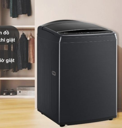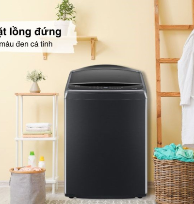 – Máy giặt LG này là dạng máy giặt lồng đứng – cửa trên thiết kế đơn giản, màu đen chủ đạo thích hợp với nhiều phong cách nội thất khác nhau.
