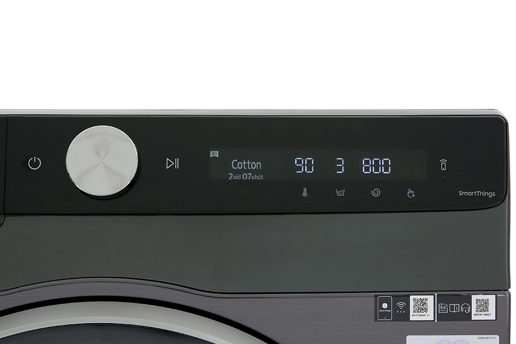 Chiếc máy giặt Samsung này được trang bị bảng điều khiển thông minh AI có khả năng ghi nhớ thói quen sử dụng, từ đó đề xuất cho bạn chế độ giặt và cài đặt yêu thích. Hơn nữa, màn hình hiển thị thông minh các quy trình giặt, giúp người dùng dễ hiểu và thao tác nhanh chóng hơn khi sử dụng.