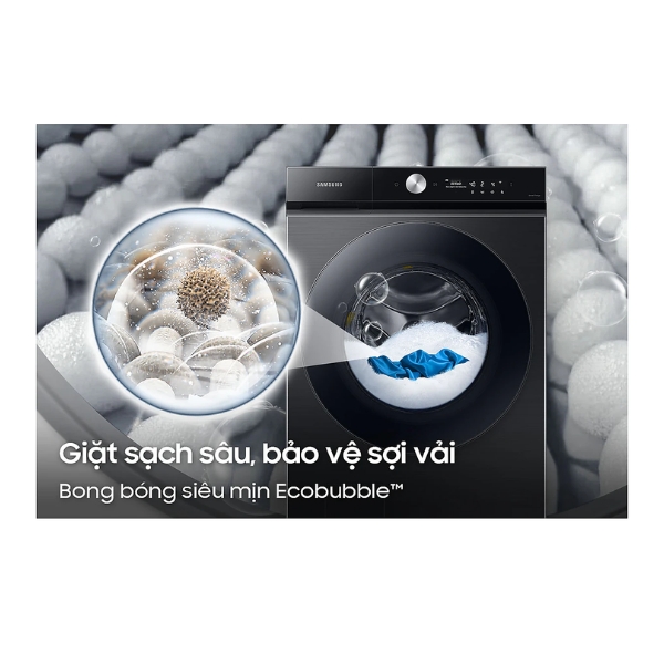 - Công nghệ bong bóng siêu mịn AI EcoBubble+: Sử dụng cảm biến để nhận biết được chất liệu vải, từ đó tối ưu bong bóng siêu mịn để loại bỏ vết bẩn hiệu quả và góp phần bảo vệ sợi vải tối ưu.