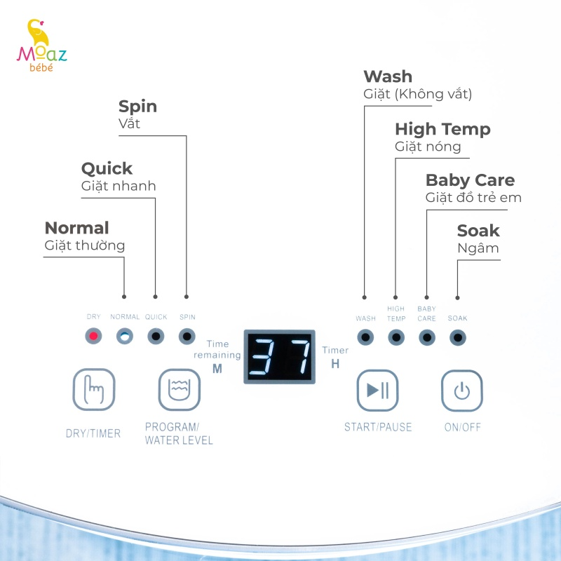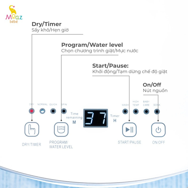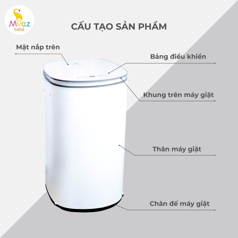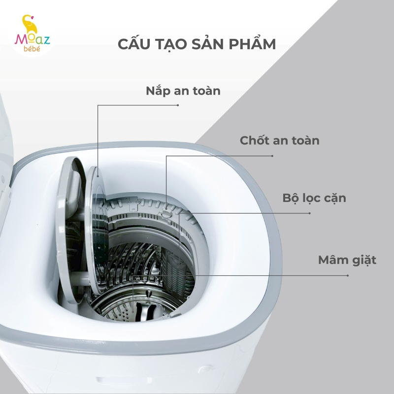 Cấu tạo máy giặt quần áo kèm sấy cho bé Moaz BéBé MB – 068 Plus