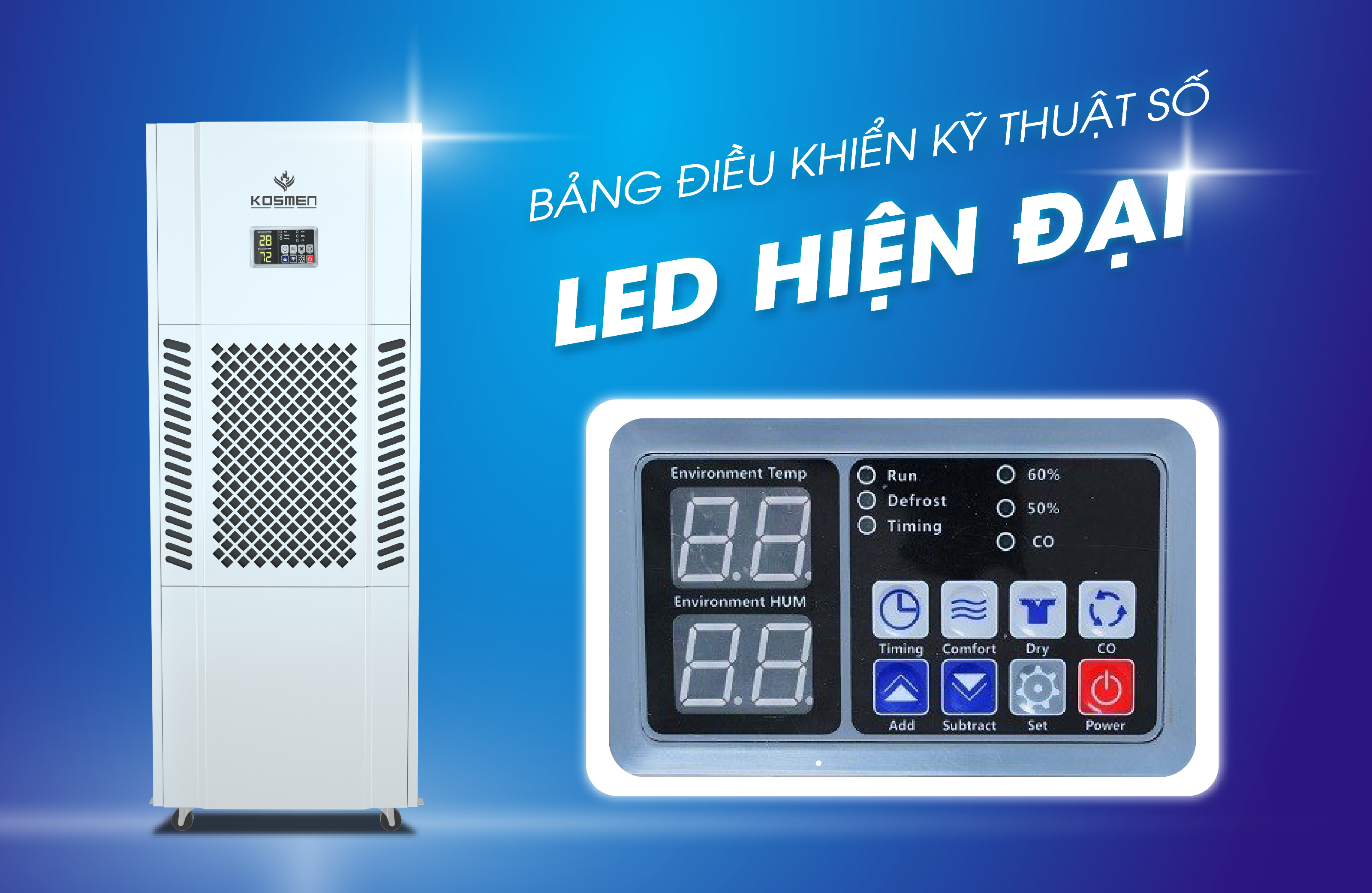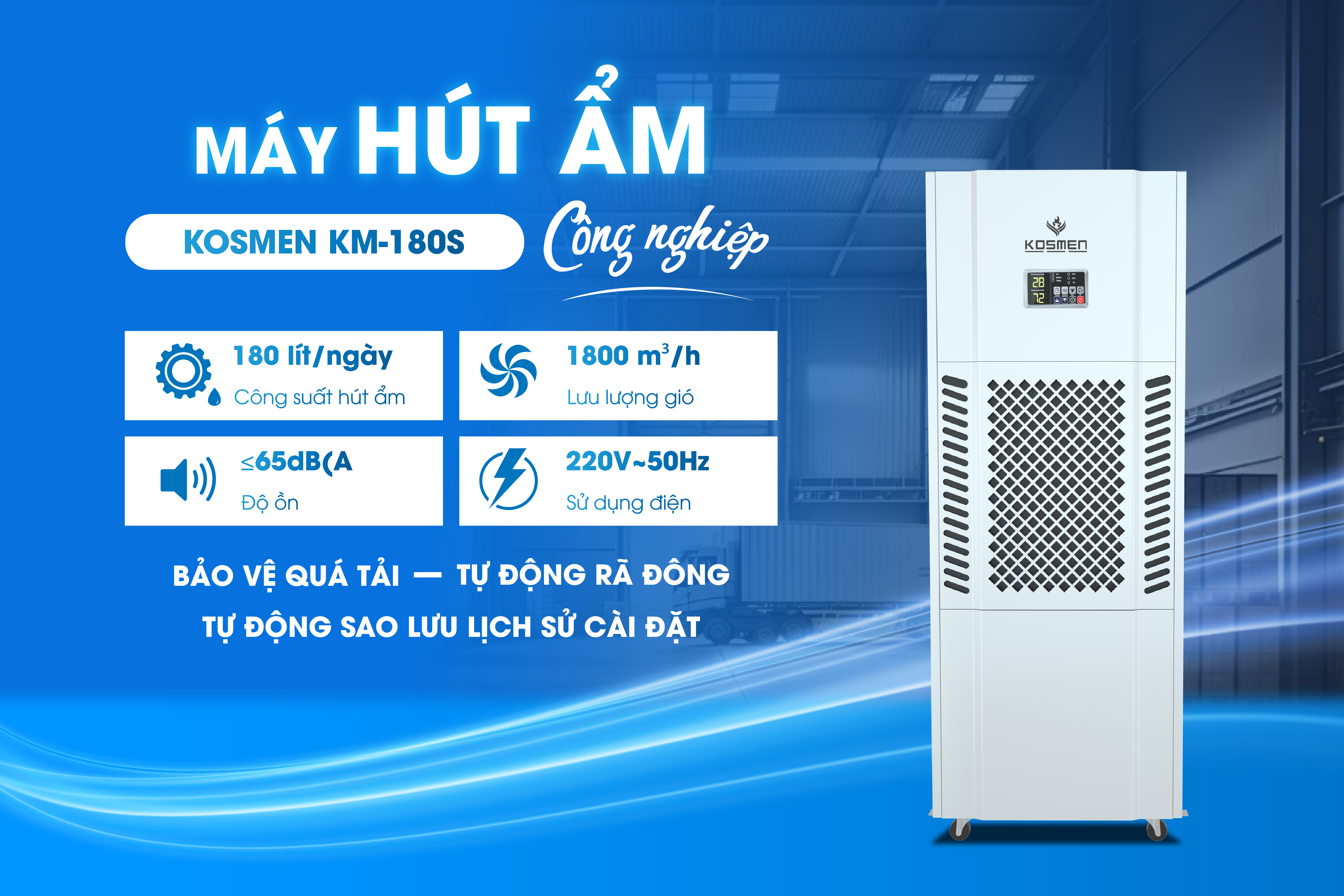 Máy hút ẩm không khí công nghiệp Kosmen KM-180S vận hành theo cơ chế tự động vô cùng tiện ích