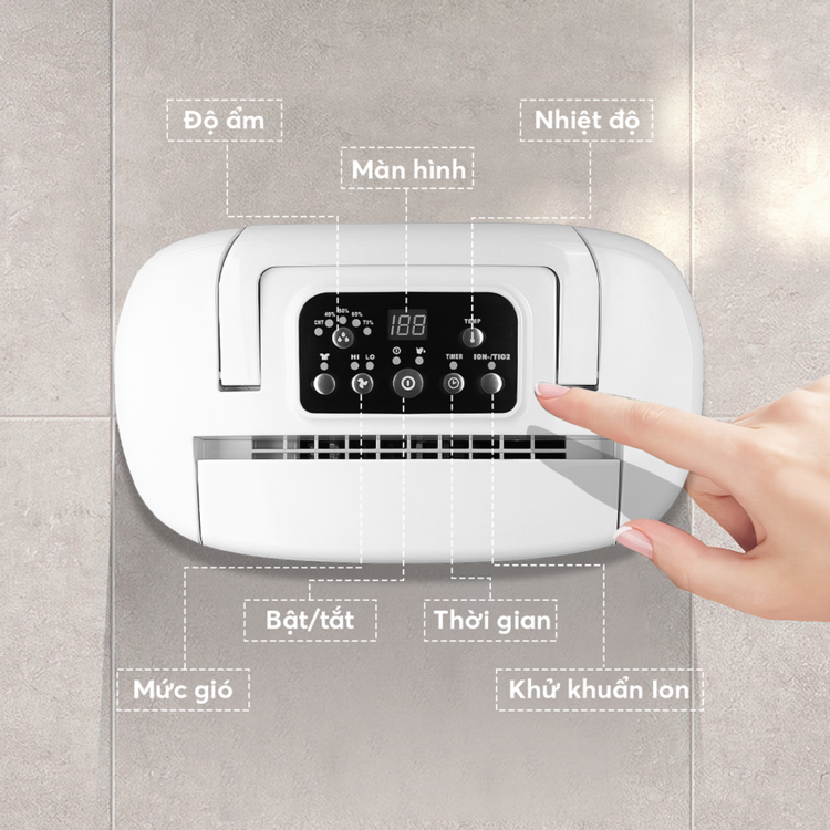 1. Chức năng 2 trong 1: hút ẩm và lọc không khí. Khi độ ẩm phòng về mức ổn định, máy tự động ngắt chế độ hút ẩm và duy trì chế độ lọc không khí trong phòng.