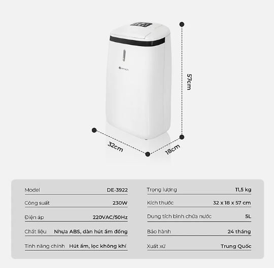 | Loại máy hút ẩm | Máy Hút Ẩm Kèm Lọc Không Khí |
