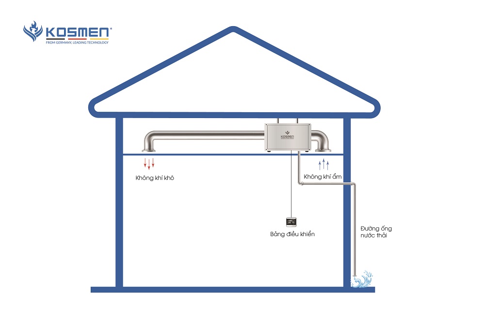 Nguyên lý hoạt động của máy hút ẩm treo trần Kosmen KM-66E