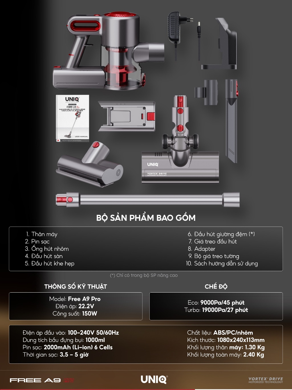 Máy hút bụi cầm tay không dây đa năng UNIQ Free A9 Pro bản nâng cấp của Free A7 Ultra đang bán chạy Top 1 trên các nền tảng trực tuyến tại Việt Nam