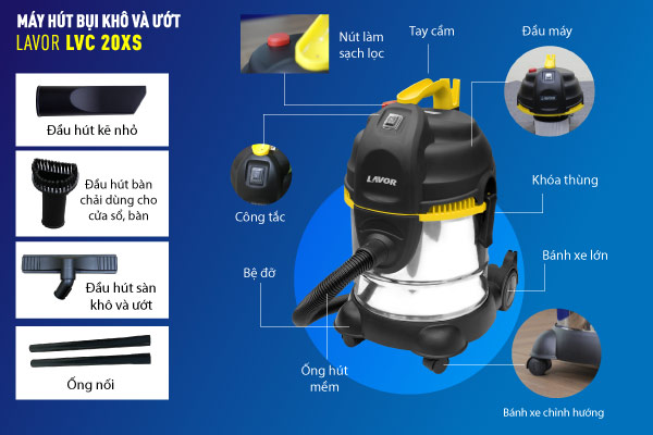 Trọn bộ phụ kiện Máy hút bụi khô và ướt Lavor LVC 20 XS