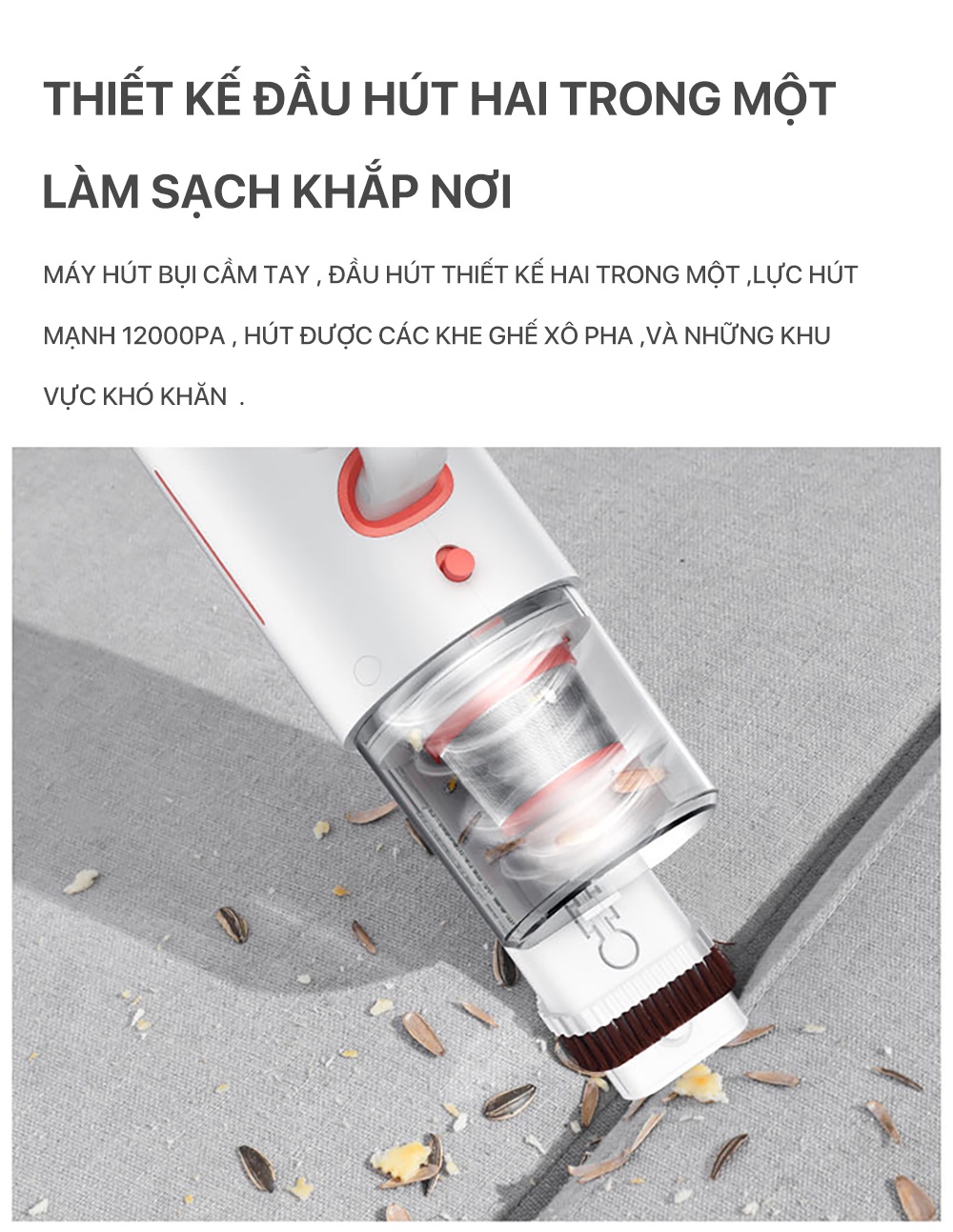 - Lực hút đạt 12.000 Pa, hút mạnh mẽ