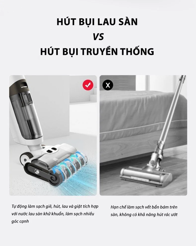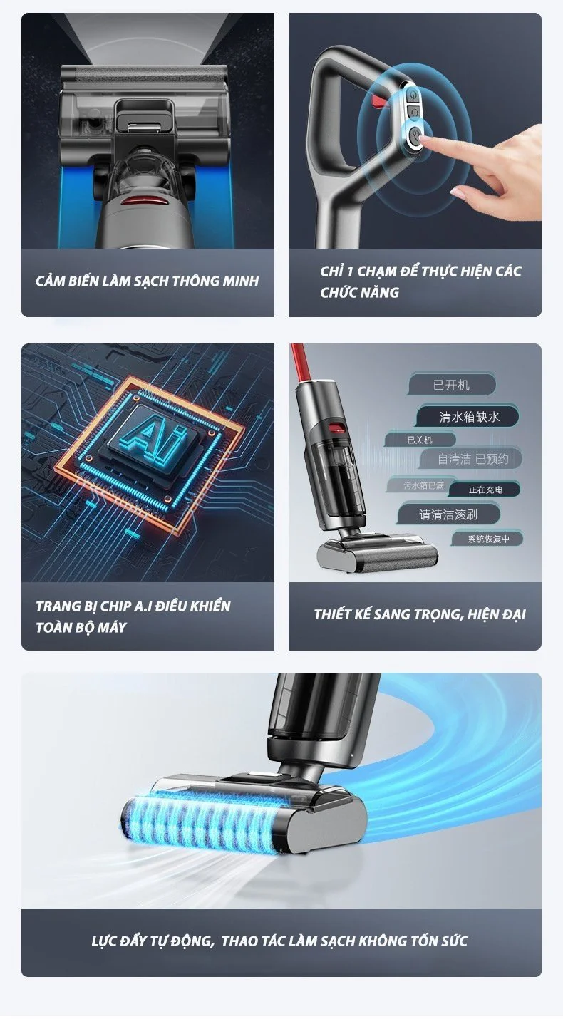 + Máy hút bụi khô và ướt làm sạch hoàn toàn mọi vết bẩn trong 1 lần làm việc ✇ Tích hợp lau nhà trong lúc hút bụi, 2IN1 siêu tiện lợi
