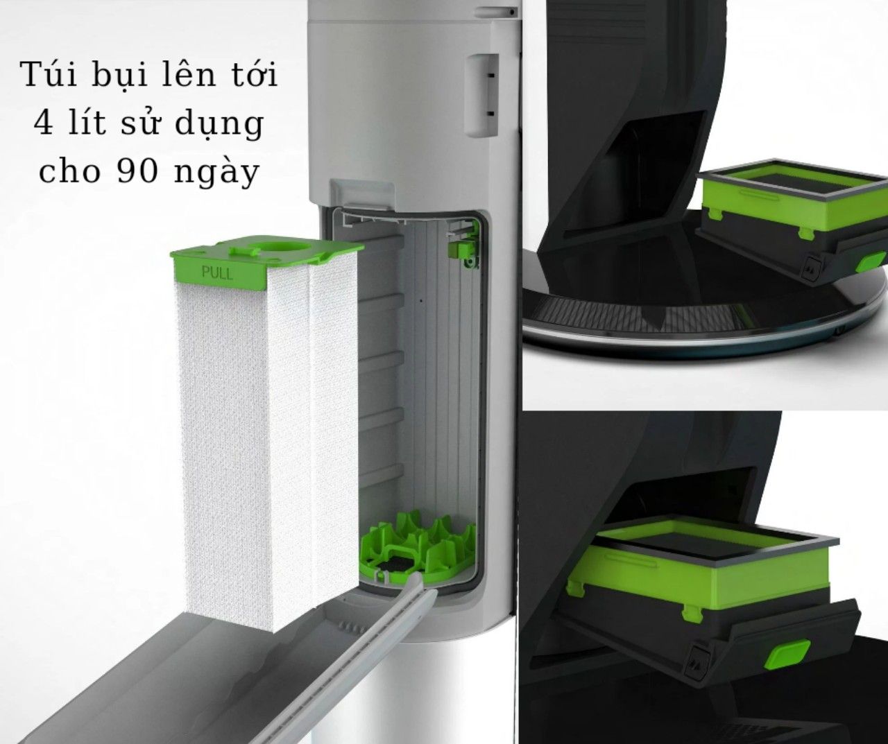 - Trạm làm sạch tự động đổ bụi & sạc pin dễ dàng