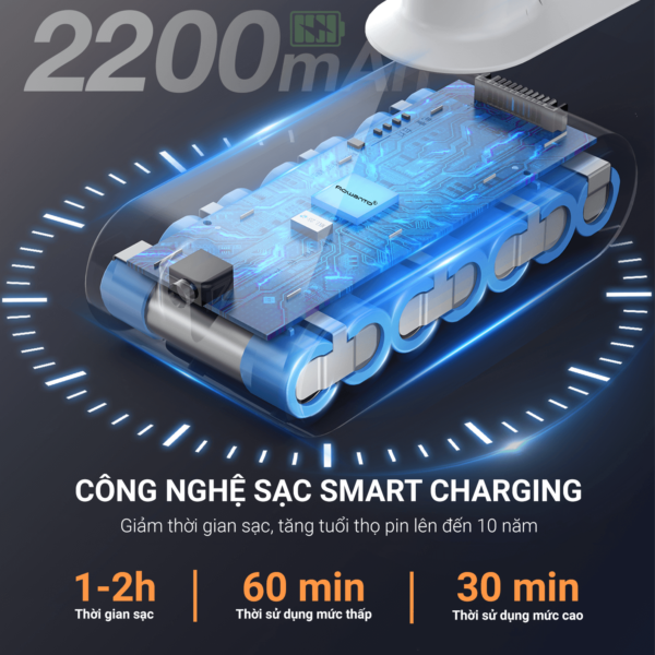 Nhờ tính năng này, bạn sẽ không còn phải lo lắng về việc máy hết pin giữa chừng khi đang dọn dẹp, đồng thời đảm bảo rằng máy luôn sẵn sàng để sử dụng mỗi khi cần.