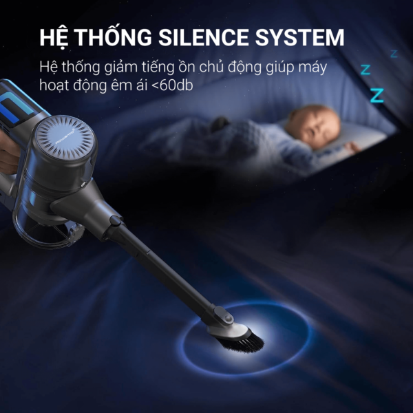 Đối với nhiều gia đình, đặc biệt là những gia đình có trẻ nhỏ hoặc người già, tiếng ồn từ máy hút bụi có thể là một phiền toái lớn. Hiểu được điều này, Rowanto V25 đã tích hợp hệ thống Silence System, giúp giảm tiếng ồn chủ động, mang lại trải nghiệm làm sạch êm ái và không gây phiền hà cho những người xung quanh.
