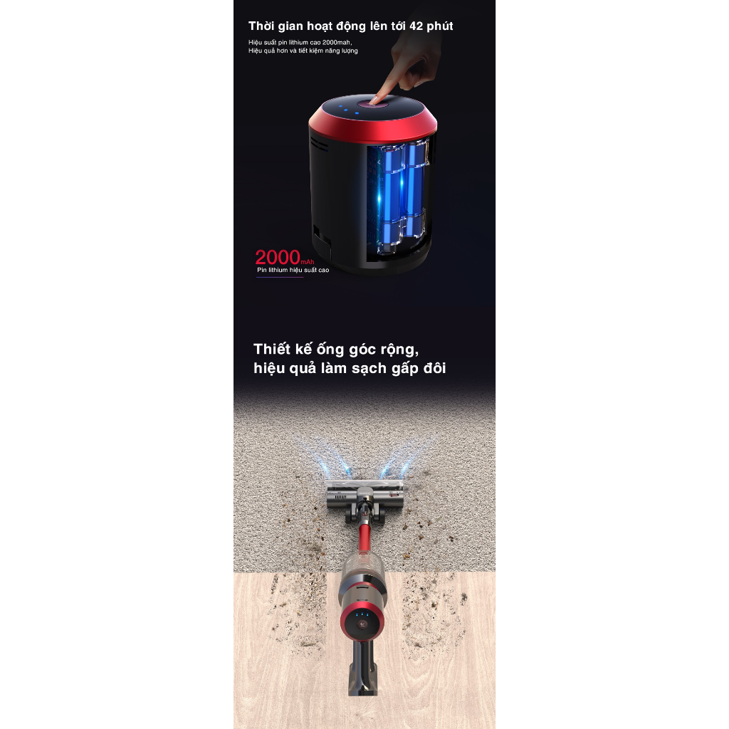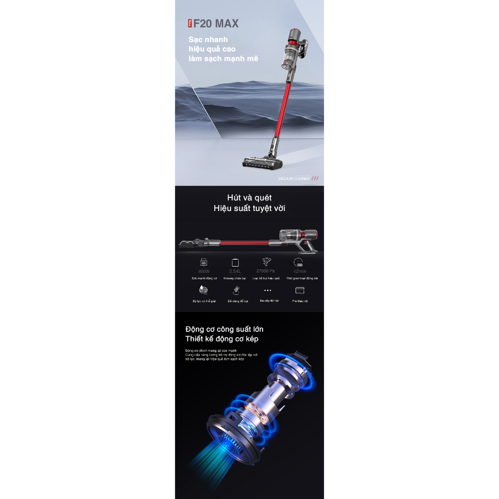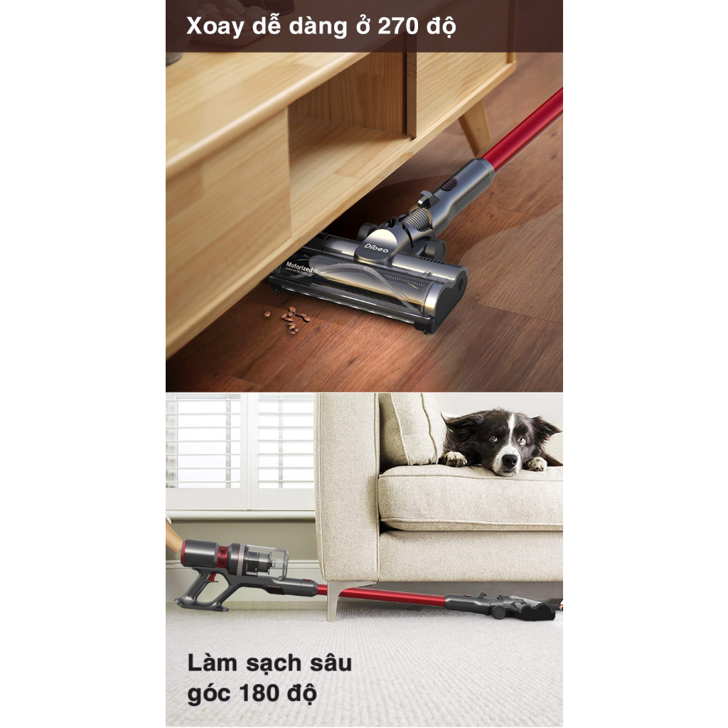 Máy hút bụi thông minh Dibea F20 Max, lực hút 27000PA, đổi trả 12 tháng