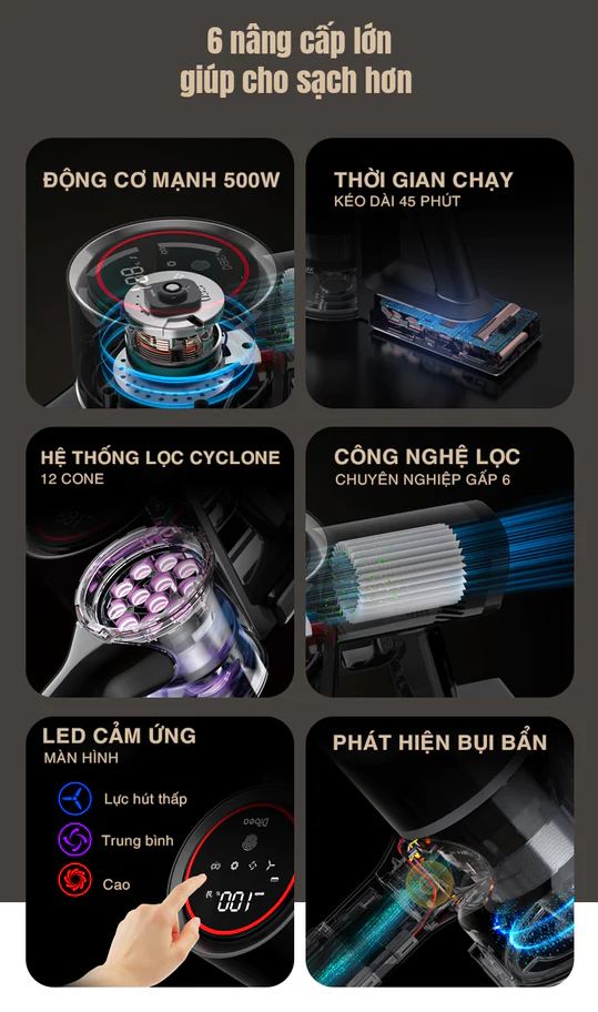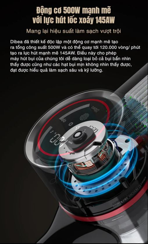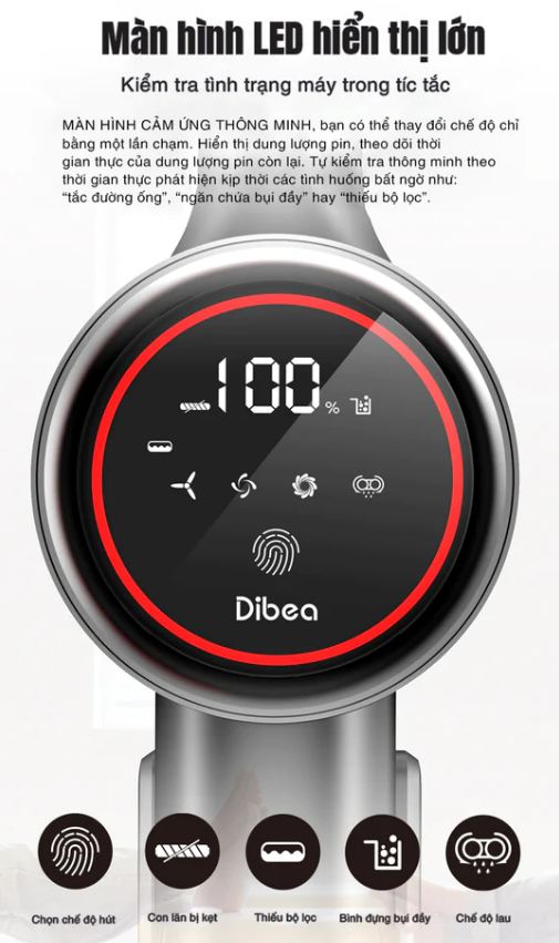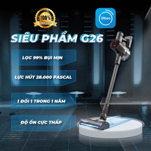 Máy hút bụi thông minh DIBEA G26, lọc 99% bụi mịn, lực hút 28000PA