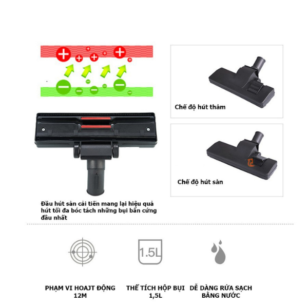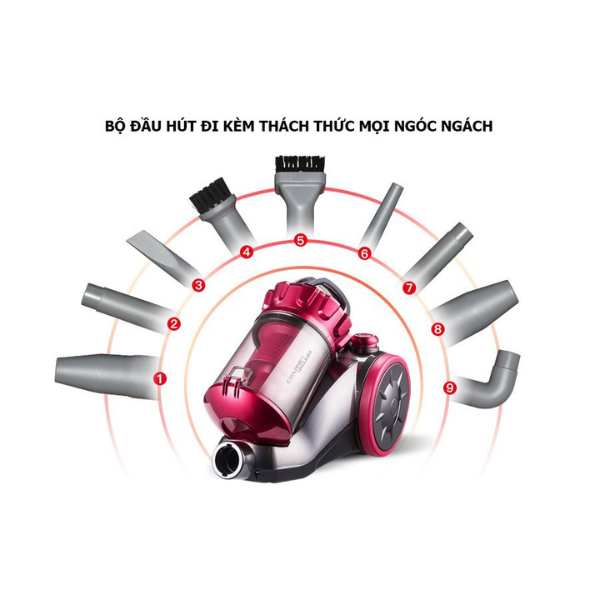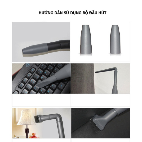 - Bộ phụ kiện, đầu hút đa năng, dễ dàng tháo lắp