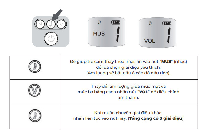 Bấm nút kí hiệu chữ (M) Điều chỉnh mức độ hút khác nhau (mạnh / nhẹ) bằng nút điều khiển áp suất hút.