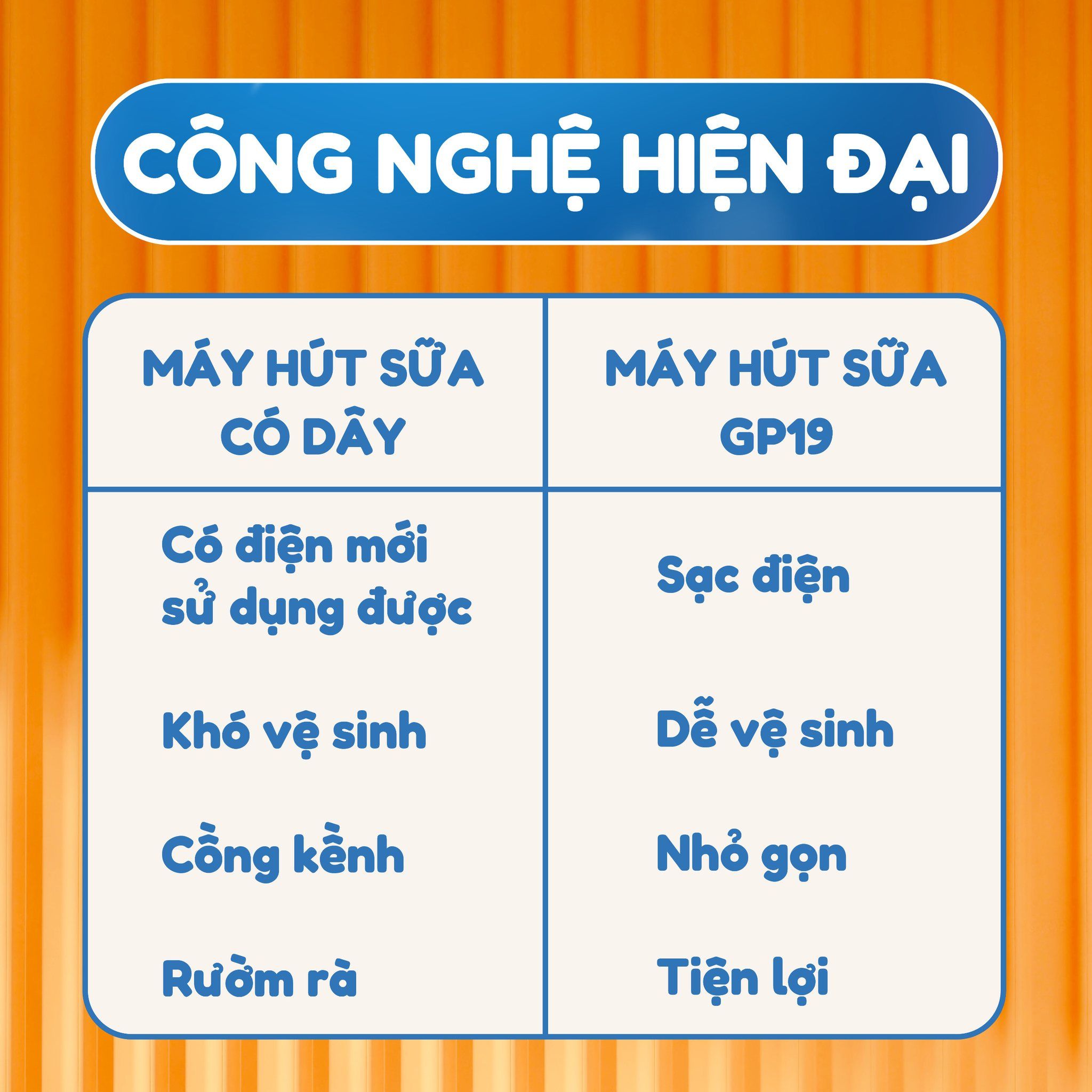 Máy hút sữa Gluck GP19 sử dụng công nghệ hút sữa tự nhiên, mô phỏng quá trình bú sữa của bé, giúp sữa chảy ra một cách tự nhiên và thoải mái. Điều này không chỉ giúp mẹ bớt đau mà còn kích thích tiết sữa nhiều hơn.