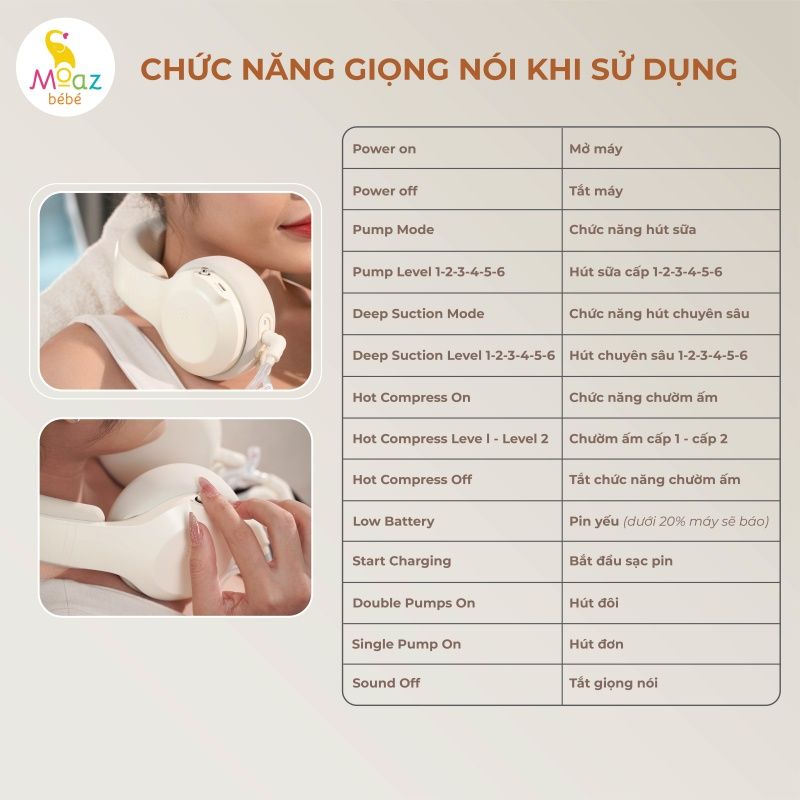 Máy hút sữa di động kèm chườm ấm cổ Moaz BéBé MB091 sở hữu một thiết kế hoàn toàn mới, đem lại nhiều công dụng lớn cho mẹ sử dụng: hút sữa, hút chuyên sâu, báo hiệu chức năng bằng giọng nói, hỗ trợ chườm ấm cho cổ. Sản phẩm đem lại cảm giác dễ chịu cho các mẹ khi sử dụng, đồng thời tăng thêm sự tiện lợi cho những mẹ bỉm bận rộn.