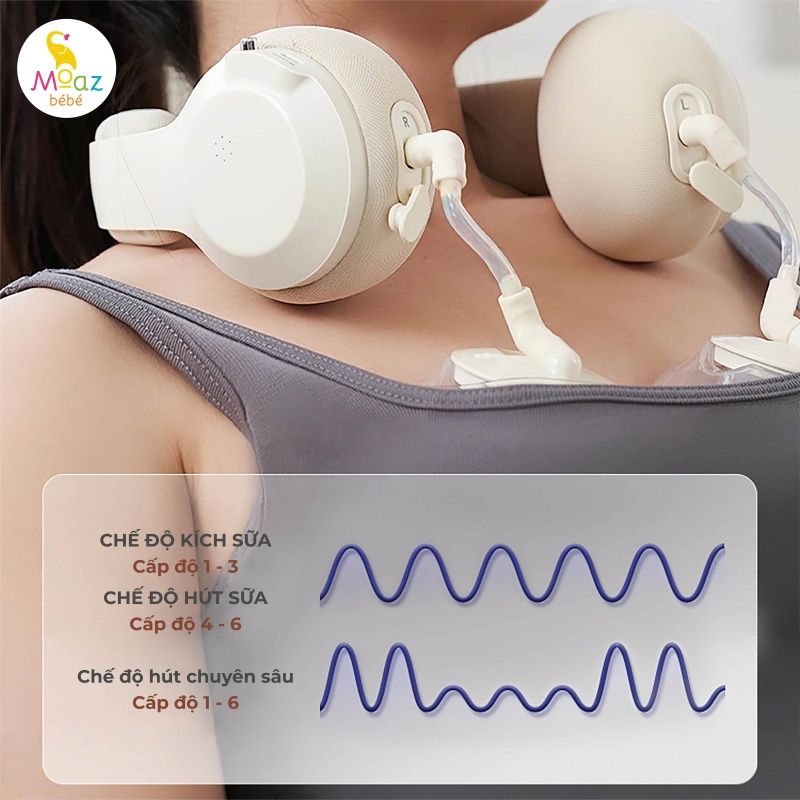 Máy hút sữa di động kèm chườm ấm cổ Moaz BéBé MB091 đa chức năng, có thể giúp mẹ kích thích tiết sữa, hút sữa chuyên sâu, giúp mẹ giảm bớt cơn đau, cảm giác khó chịu vì căng tức ngực. Máy được thiết kế với một vành đeo qua cổ, vừa giúp mẹ thuận tiện khi vừa làm việc vừa hút sữa, lại có khả năng chườm ấm cổ, giúp mẹ thêm thư giãn.