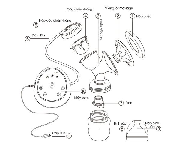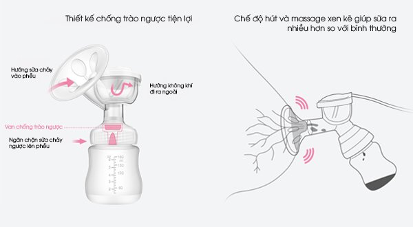 4. 3 chế độ khác nhau gồm Massage ,Hút sữa, Giảm xóc, mỗi chế độ khách nhau có 9 cấp độ hút từ nhẹ đến mạnh