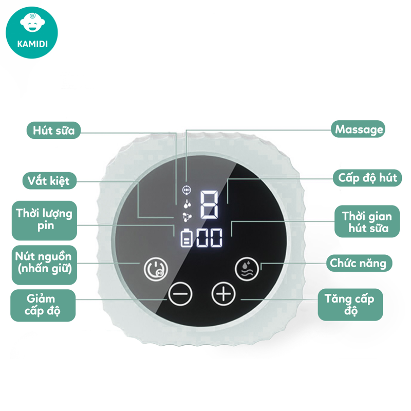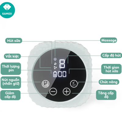 Ngoài phễu silicon riêng biệt máy hút sữa silicon Kamidi Max còn có màn hình Led cảm ứng dễ dàng sử dụng cho mẹ với 3 chức năng chính, mỗi chức năng có 9 cấp độ hoạt động: