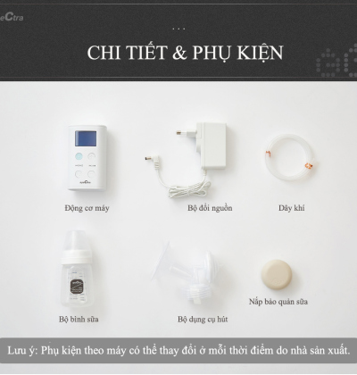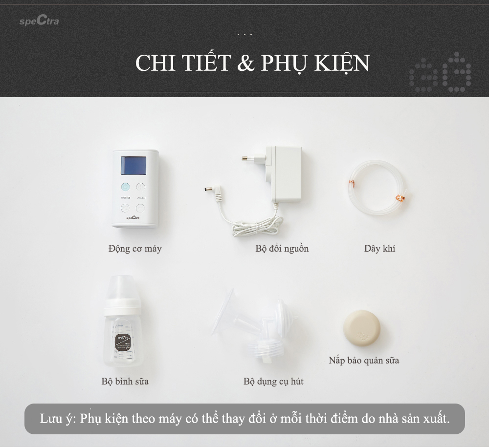 Những phụ kiện đi kèm với động cơ Máy hút sữa Spectra 9+ bao gồm: