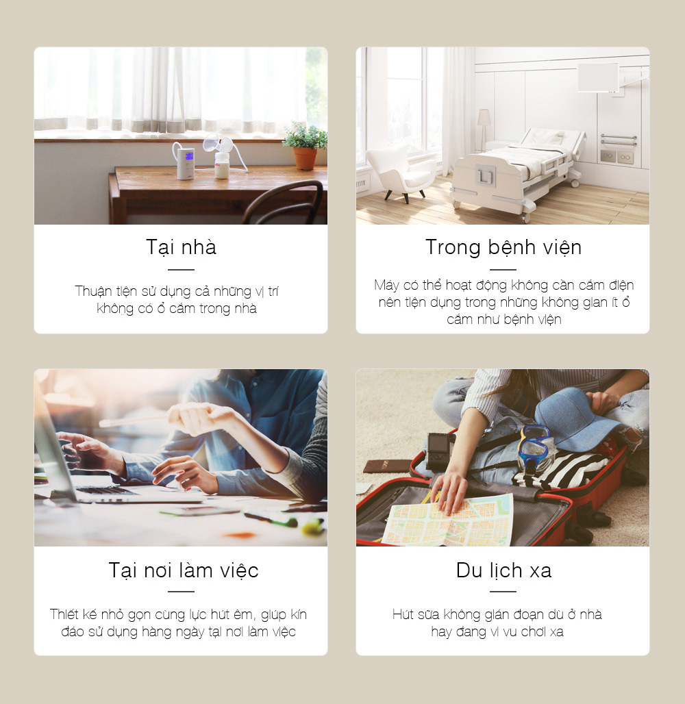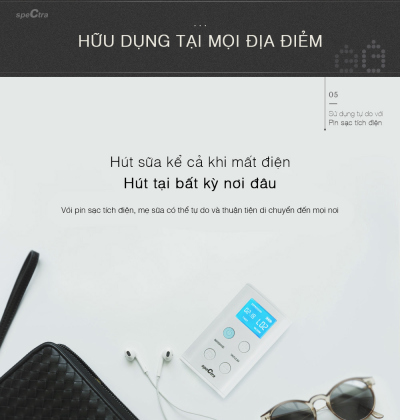 Khi phải mang máy đi xa như trong một chuyến du lịch hay công tác, mẹ sẽ rất cần một chiếc máy hút sữa được tích hợp pin tích điện. Máy hút sữa Spectra 9+ với pin sạc có thời lượng lên đến 120 phút sẽ giúp mẹ thoát khỏi nỗi lo bị gián đoạn những cử hút sữa quan trọng của mình khi phải di chuyển.