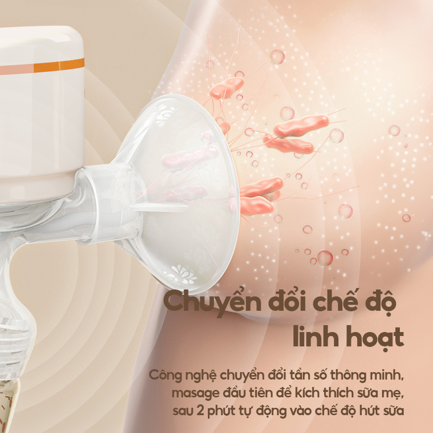 - Hiệu suất hút cao: chế độ chuyển đổi tần số thông minh từ 9 mức độ, hút sữa một cách nhanh chóng và hiệu quả, giảm thời gian hút sữa và tăng lượng sữa.