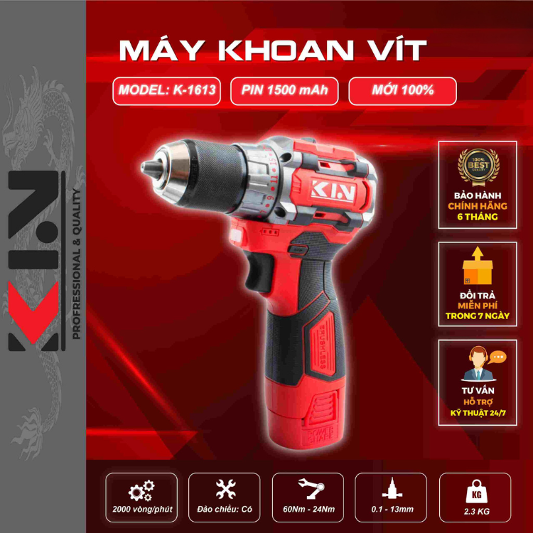 Máy khoan vít – pin 16.8V không chổi than, đường kính mũi 13mm K-1613