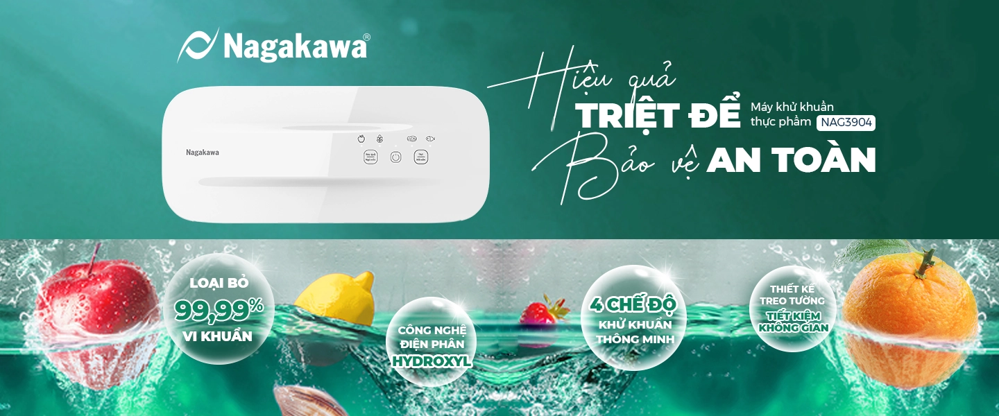 Nổi bật với công nghệ điện phân Hydroxyl hiện đại, Máy khử khuẩn thực phẩm NAG3904 mang đến sự an tâm toàn diện cho người dùng, xóa bỏ nỗi lo "thực phẩm bẩn" đang ngày càng gia tăng.