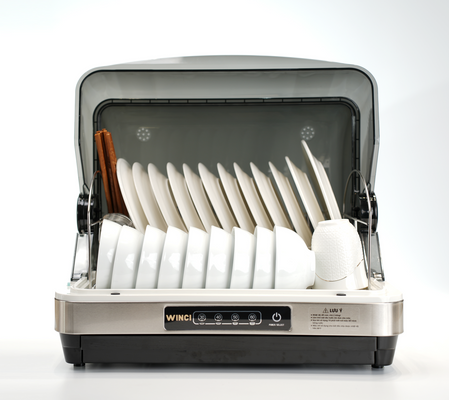 Giải pháp chính là Máy khử trùng bát đĩa Winci KWC-UV007, sửa dụng tia UV với bộ lọc HEPA cực kỳ chất lượng.