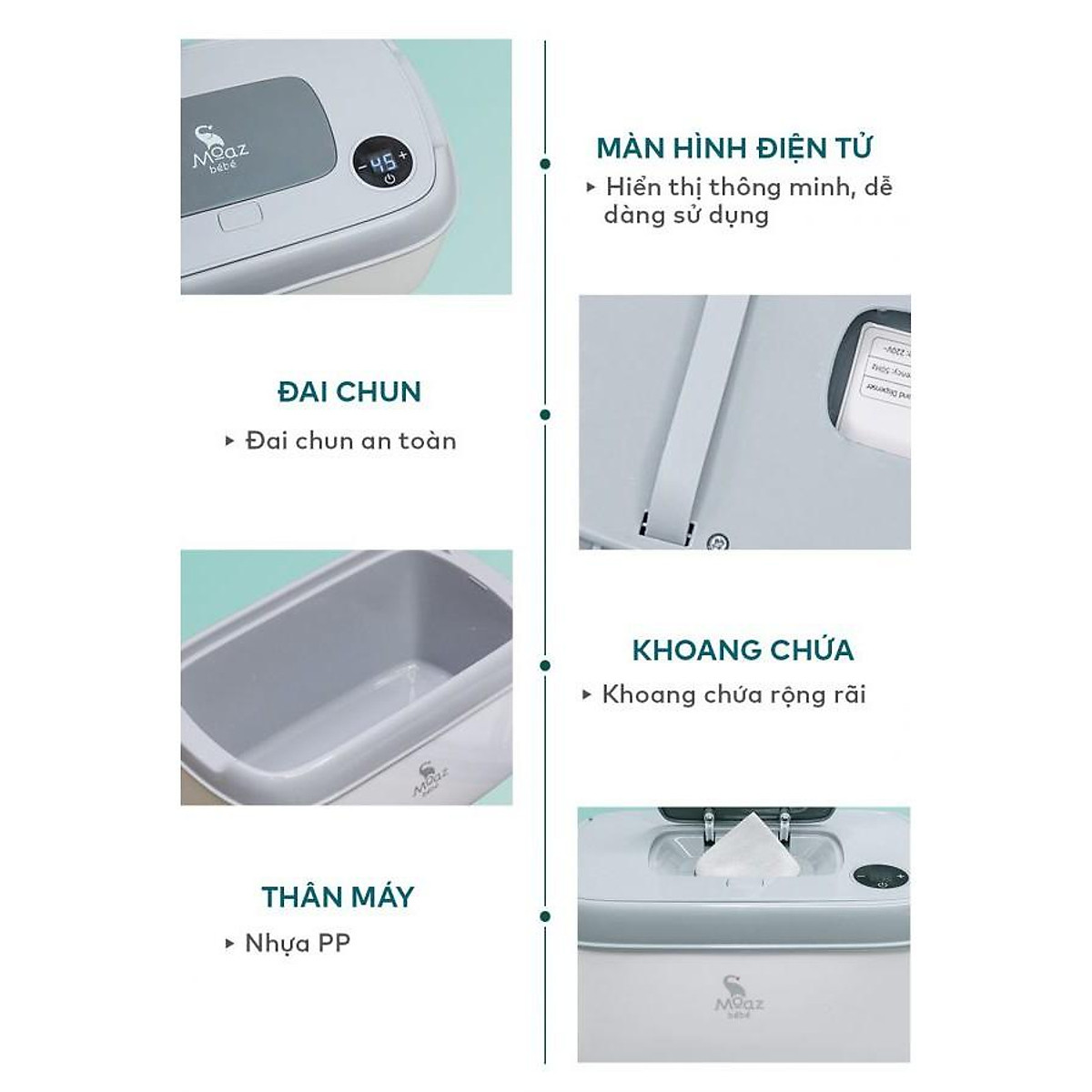 - Máy dùng được cả khăn ướt và khăn khô đa năng