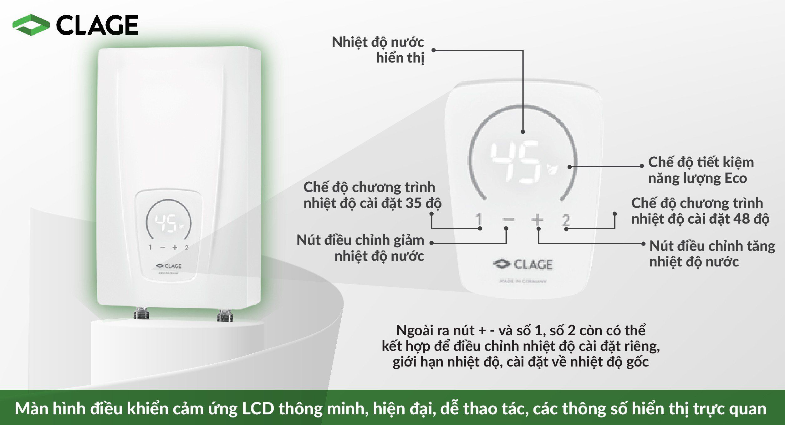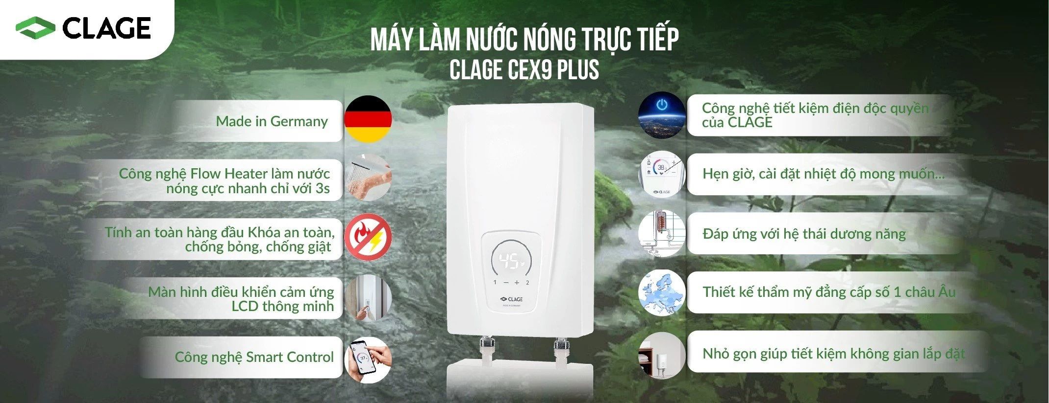 CLAGE là công ty hàng đầu trong lĩnh vực máy nước nóng trực tiếp. Với hơn 70 năm kinh nghiệm và sáng tạo, CLAGE đã xây dựng được uy tín về chất lượng, độ bền và tiết kiệm năng lượng cho sản phẩm nước nóng trực tiếp của mình. Máy nước nóng CLAGE được thiết kế thông minh, nhỏ gọn và không cần bình chứa nước. Để đáp ứng nhu cầu ngày càng cao, CLAGE đã phát triển dòng sản phẩm E-COMPACT trong đó sản phẩm nổi bật là Máy Làm Nước Nóng Trực Tiếp CEX9 Plus với thiết kế theo chuẩn Châu Âu và những tính năng hiện đại nhất trong ngành máy nước nóng.