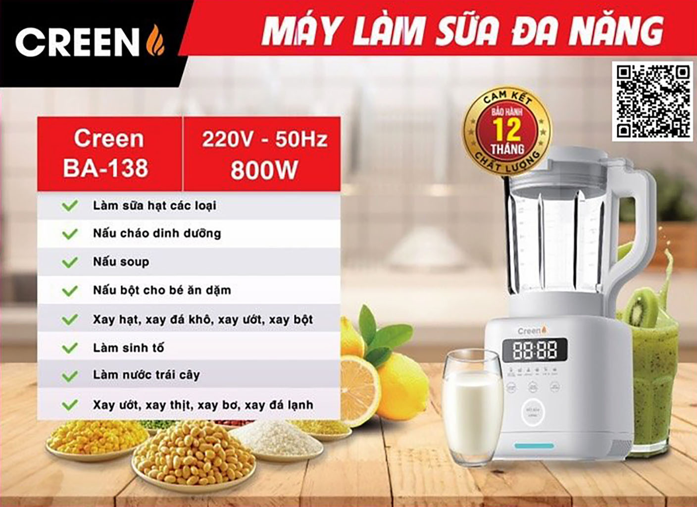 Sử dụng các loại hạt, ngũ cốc để tạo thức uống bổ dưỡng ngay tại nhà hiện là xu hướng của nhiều bạn trẻ và người nội trợ thời đại công nghệ 4.0. Trong số thiết bị điện gia dụng hỗ trợ việc nấu sữa thì máy làm sữa CREEN mang lại nhiều lợi ích thiết thực hơn. Ngoài nấu sữa thì máy Creen còn thực hiện nhiều chế độ với nhiệt độ nóng, lạnh tùy từng món. Hơn thế, dòng sản phẩm này còn an toàn khi sử dụng với khóa nắp an toàn và chất liệu cao cấp, không độc hại.