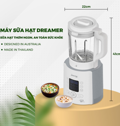 Máy sữa hạt Dreamer là dòng sản phẩm đa năng sắp ra mắt tại thị trường Việt Nam. Với thiết kế tinh tế một màu trắng thuần khiết, kết hợp lưỡi dao 301 siêu bén là 1 “chiến binh” xay nấu vô cùng mạnh mẽ. DKA- MCB117 sẽ mang đến cho gia đình bạn những ly sữa hạt thơm ngon, nguyên chất và những món ăn, loại xốt cực healthy. Thiết bị là trợ thủ đồng hành cùng bạn cho phong cách sống lành mạnh, hiện đại chỉ với 1-23 phút cho 1 lần xay nấu mỗi ngày.