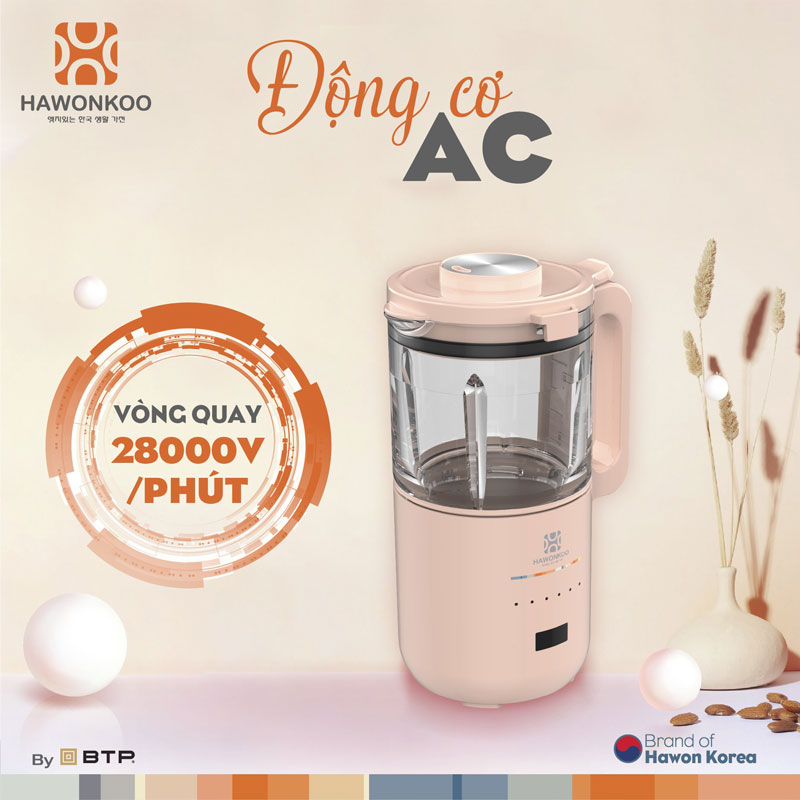 Động cơ AC, vòng quay 28000r/min, 100% dây đồng nguyên chất, với 9 tốc độ xay, không ồn, chống rung với công suất 450W có thể dễ dàng nghiền nát và vắt hầu hết các thành phần nguyên liệu cứng hoặc nhiều xơ. tự động ngắt khi bi quá nhiệt, quá tải. Có gắn quạt làm mát 10 cánh bằng nhựa chịu nhiệt PA66+30% Glass fiber chất lượng cao, chịu nhiệt, hoạt động êm ái, không gây tiếng ồn.