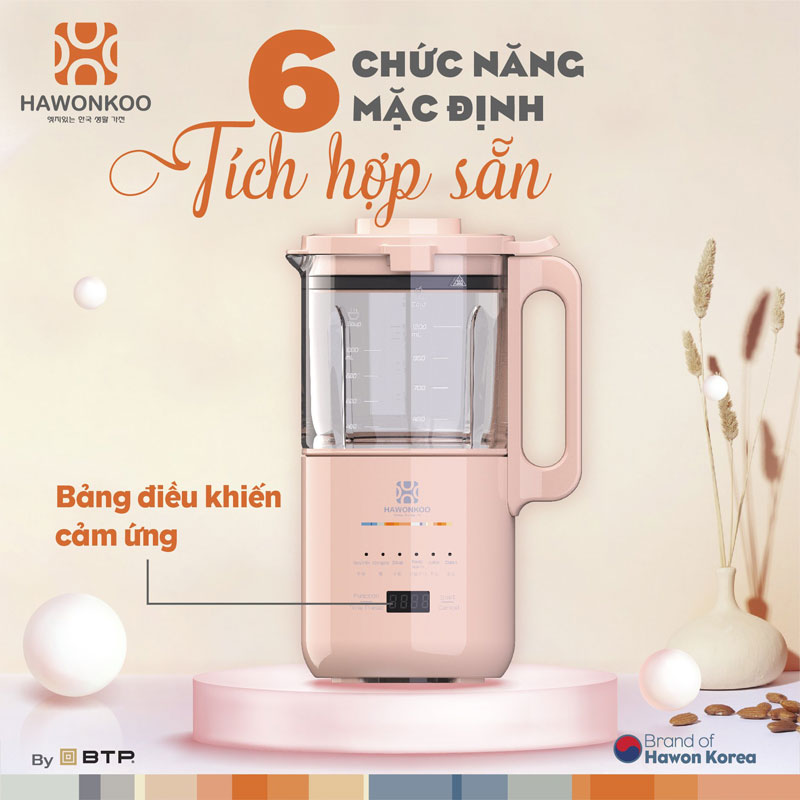 Máy làm sữa hạt Hawonkoo SMH-120-PK tích hợp nắp chặn thông minh “Smart Cap” bằng nhựa PP, an toàn với người sử dụng. Với thiết kế gioăng silicon chịu nhiệt 2 lớp, kín hoàn toàn, chống trào tuyệt đối khi thực phẩm nấu sôi, ngăn ngừa sự rò rỉ/ chống tràn khi đun nấu, giữ an toàn cho thiết bị và người dùng. Van xả an toàn, chống chào bồi, chống bỏng, chống hư hại sản phẩm, đảm bảo quá trình nấu luôn an toàn cho bạn và cả gia đình. Cảm biến từ trên nắp, đảm bảo nắp được đậy kín, đúng kỹ thuật, an toàn cho thiết bị và người dùng.