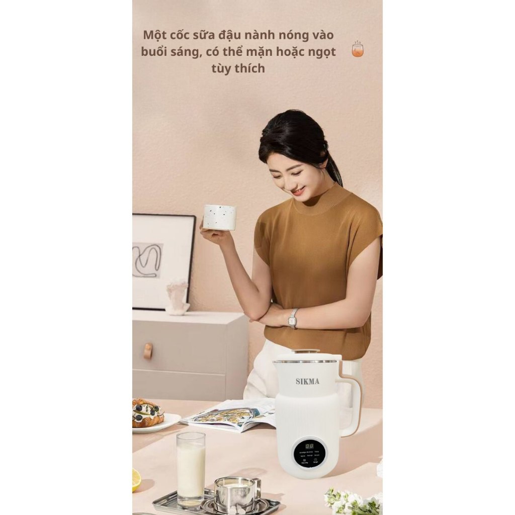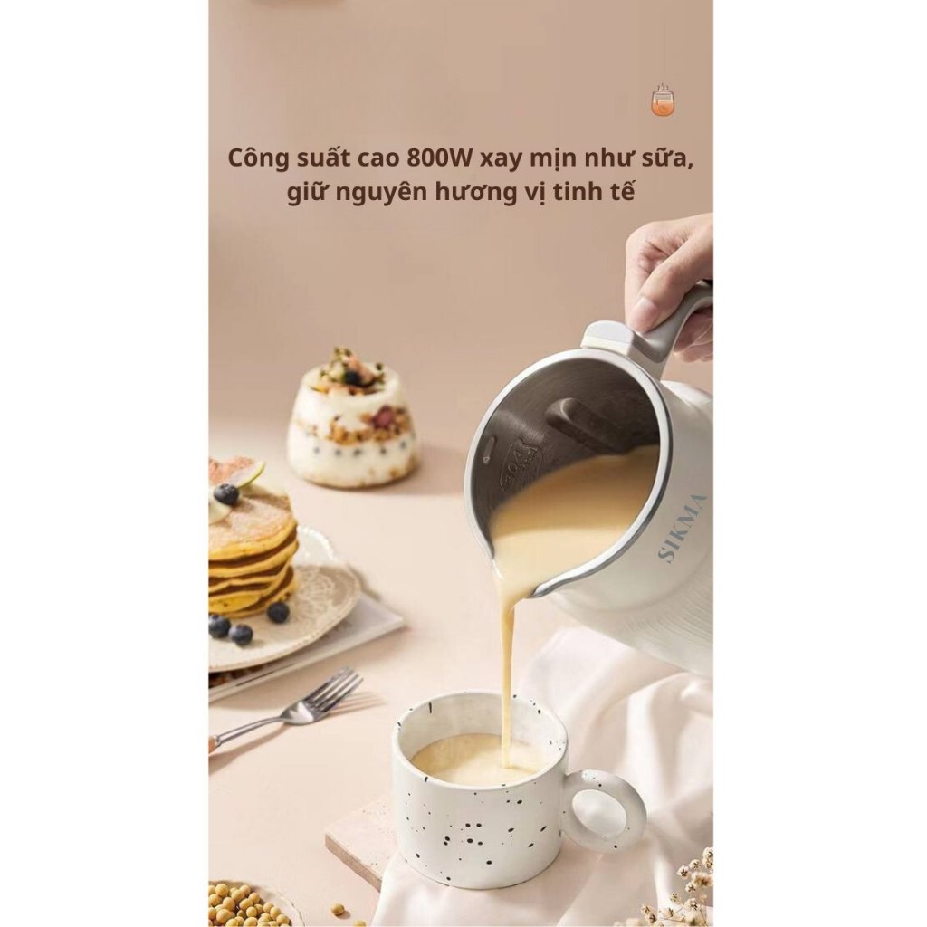 Máy làm sữa hạt SIKMA công suất cao 800W, dung tích 800ml có hẹn giờ và giữ ấm, Bảo hành 12 tháng