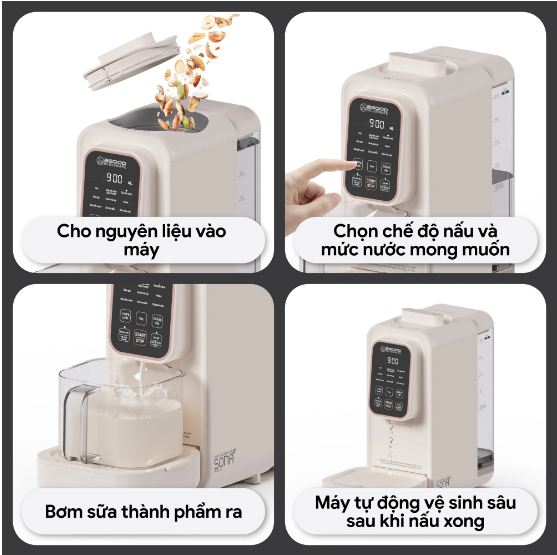 - Nhiệt kế đo sữa trong lòng máy chính xác 99.9%, giúp món sữa thơm ngon, dễ uống