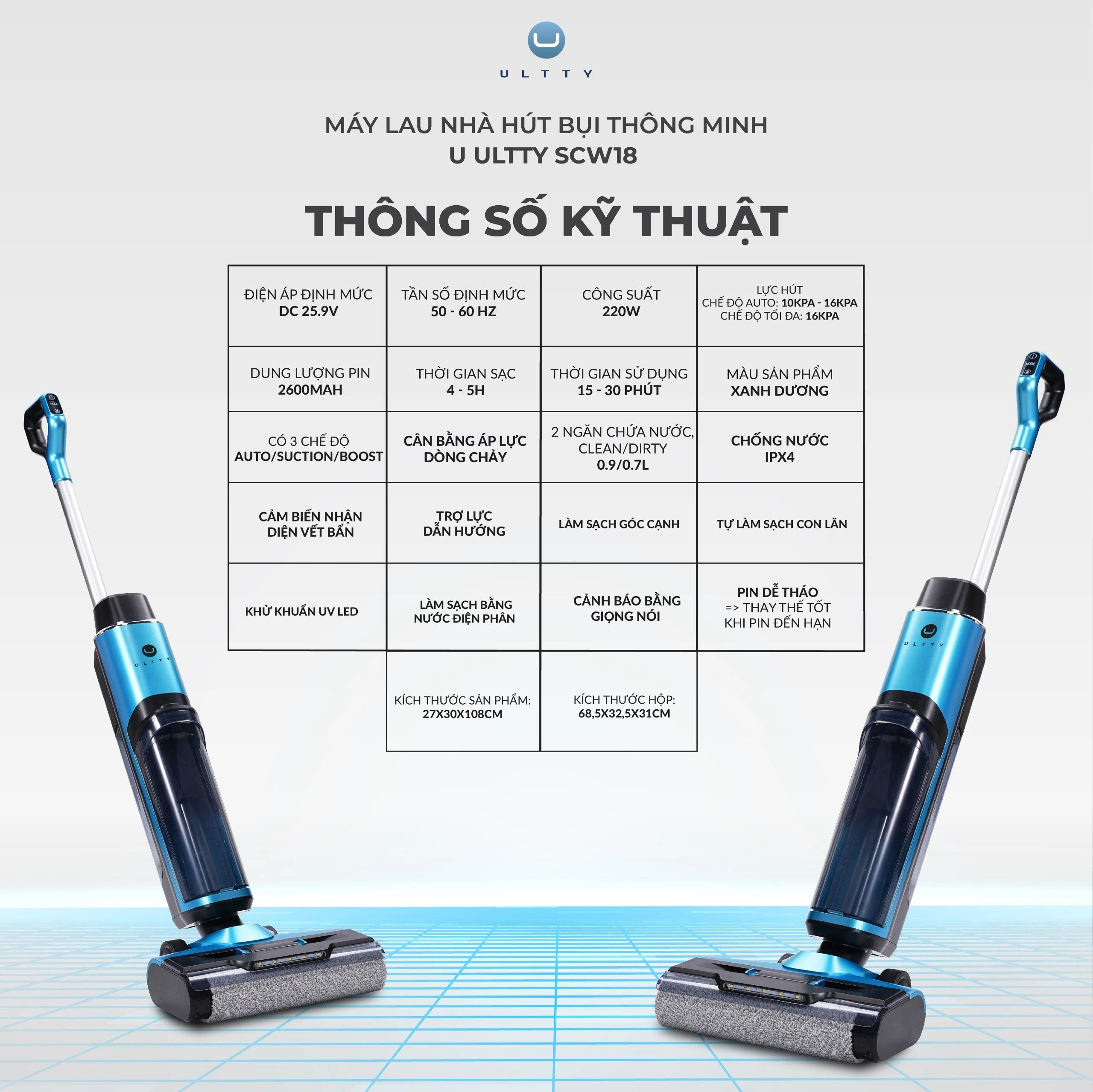 Máy lau nhà hút bụi thông minh U Ultty SCW18 một sản phẩm mới của ULTTY với nhiều tính năng vượt bậc giúp cho việc dọn dẹp trong ngôi nhà bạn trở nên thật dễ dàng