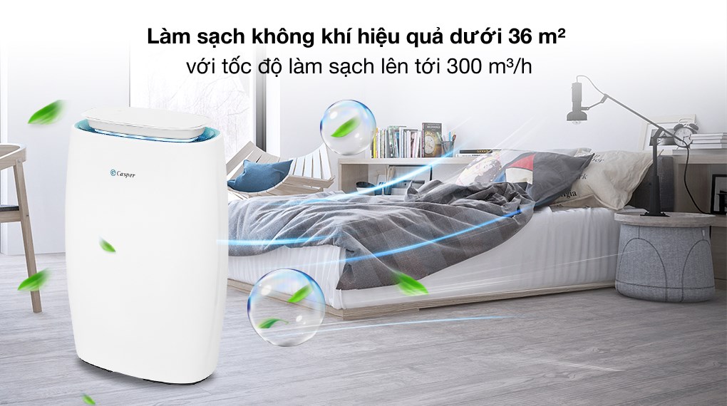 Máy lọc không khí Casper AP-300MAI với khả năng lọc sạch không khí nhờ bộ lọc tối ưu, công suất hoạt động 32W, tốc độ phân phối khí sạch 300 m³/h phù hợp cho không gian dưới 36 m2. Đây hứa hẹn sẽ là người đồng hành chăm sóc sức khỏe toàn diện cho cả gia đình bạn.
