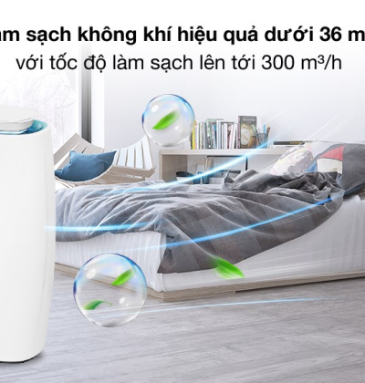 Máy có công suất hoạt động lên đến 32W cùng với tốc độ phân phối khí sạch CADR 300 m³/h, thích hợp cho các không gian phòng có diện tích dưới 36 m2.